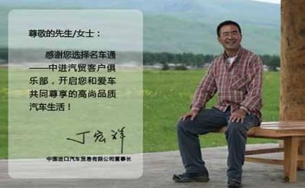 “名车通”的成立,一直以来受到中进汽贸领导极大的关心和重视。在“名车通”启动之际,中国进口汽车贸易有限公司董事长丁宏祥特为“名车通”客户服务手册以及“名车通”杂志的开通,致以热情洋溢的祝贺辞,并专为名车通编拟了“致名车通会员的一封信”。